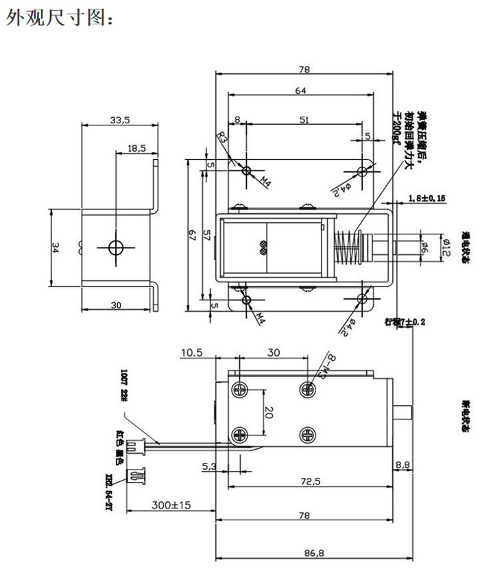 | 电流: | 0.3A | 通电率: | 100%通电 | 弹簧回力: | 吸力: |